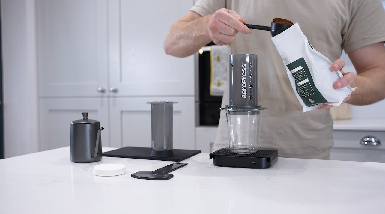 Experience the full potential of your AeroPress with this easy to follow, step by step process. From preparing your equipment to pressing out a rich, flavourful coffee.