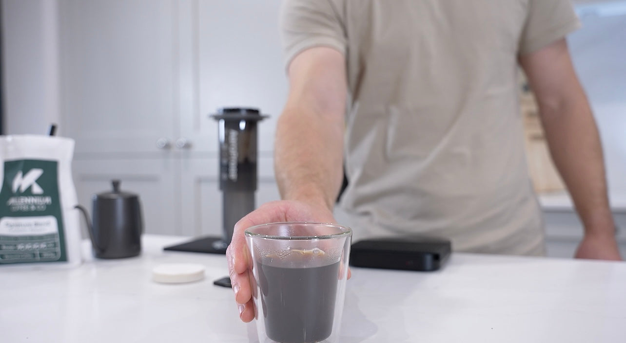 Once you’ve pressed out all the coffee, remove the AeroPress from your mug.